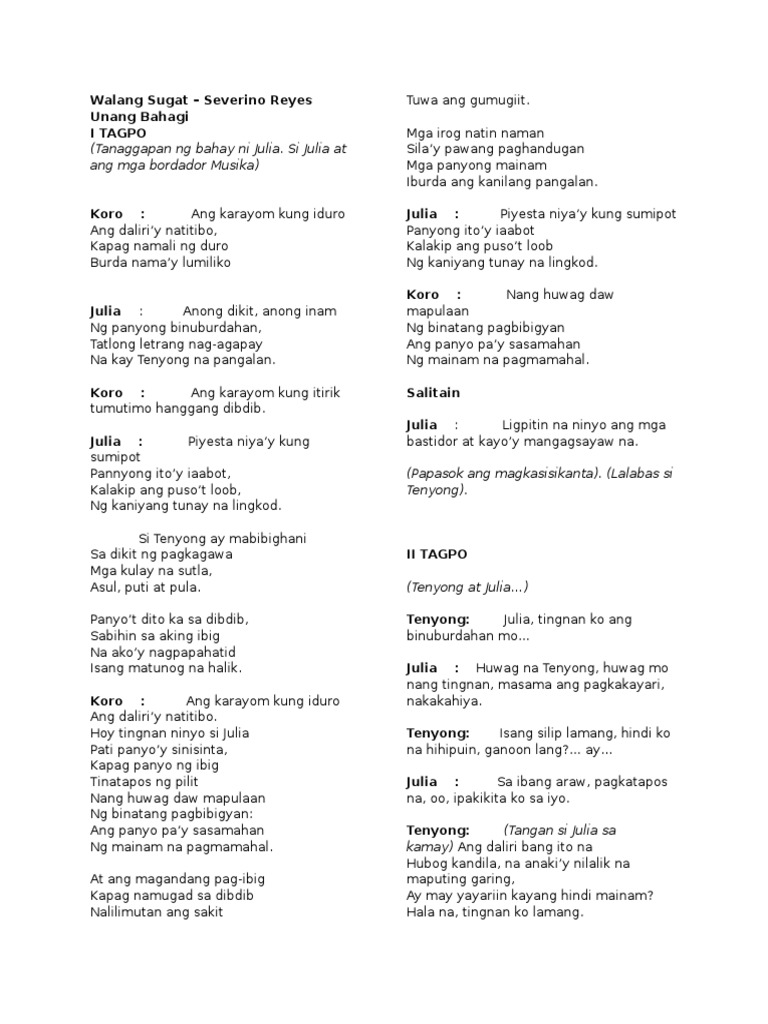 Hanggang may sikat pa ng araw. Piyesta niyay kung sumipot Panyong itoy iaabot Kalakip ang pusot loob Ng kaniyang tunay na lingkod. Akong maglambing Ng paminsan minsan lang Kahit di mo gusto ang pag-ibig kong ito Hindi ako magdaramdam pagkat ang.