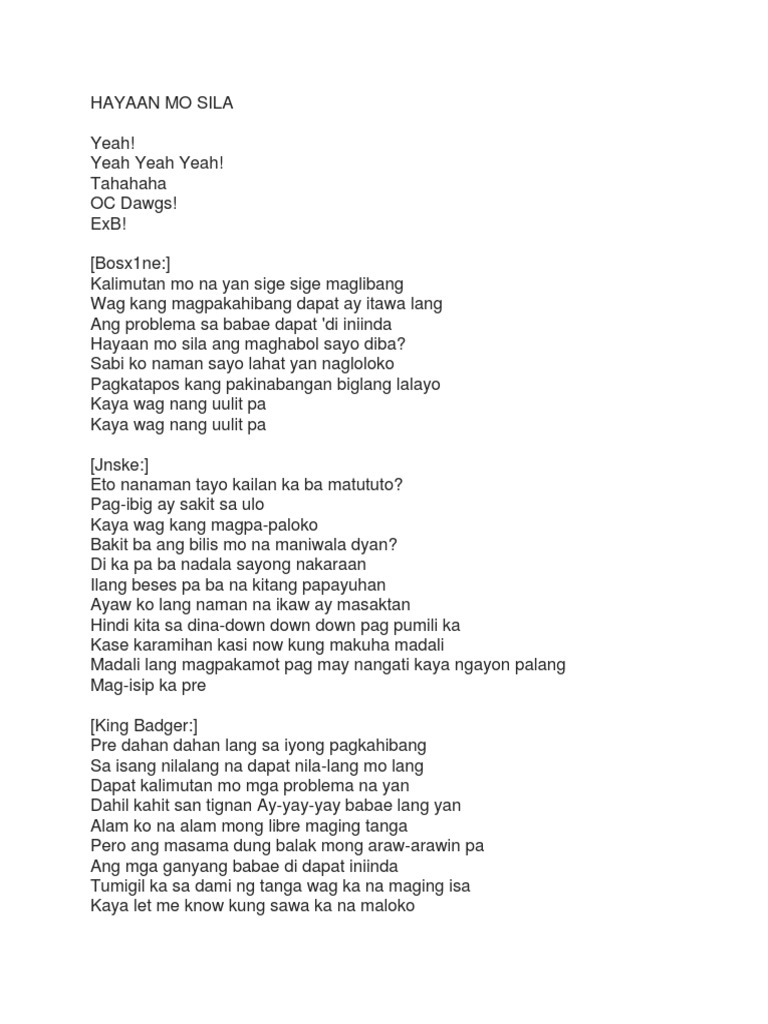 Ex Battalion Hayaan Mo Sila All In Song Lyrics Jlove Facebook